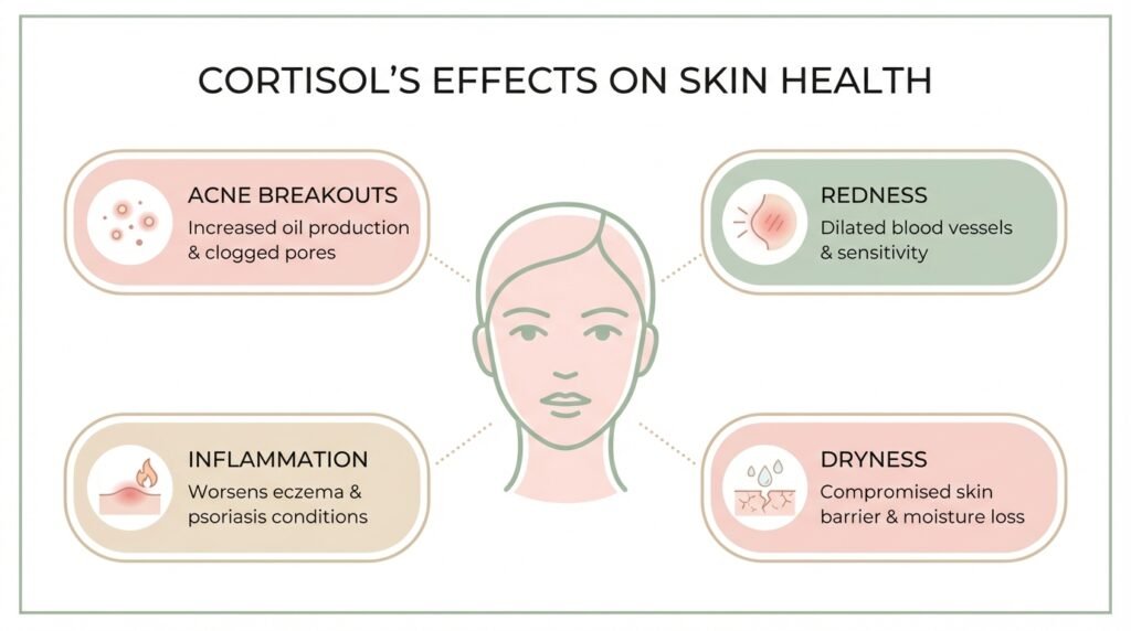 Yes. Chronic stress can worsen acne, eczema, and sensitivity due to inflammation and hormonal shifts.