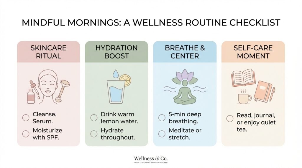 This small shift transforms routine into ritual. Over time, it reinforces self-care for mental wellness by anchoring your mind in the present moment — especially helpful on anxious days.