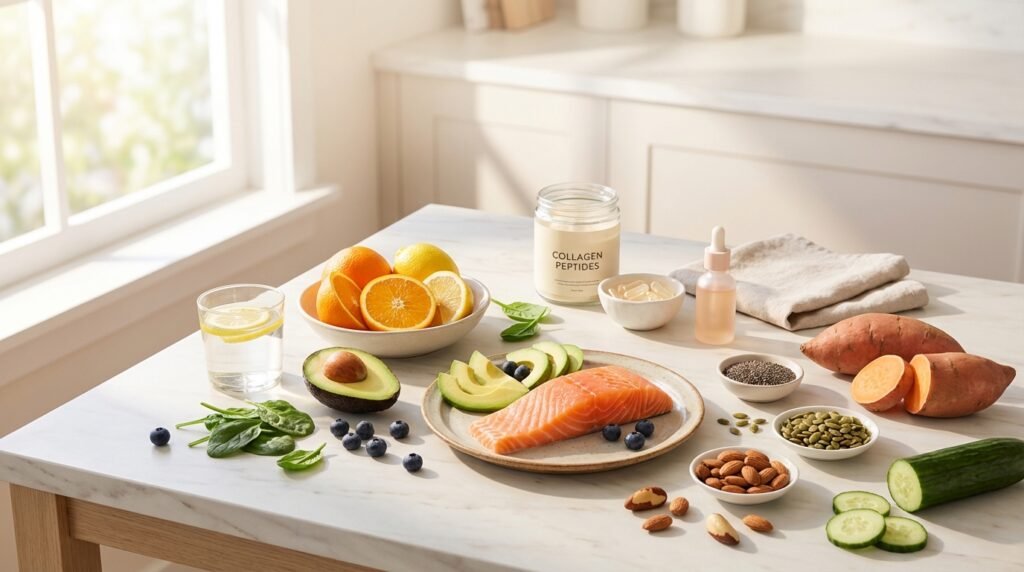 Notice the pattern? Antioxidants, healthy fats, hydration, and balanced protein.